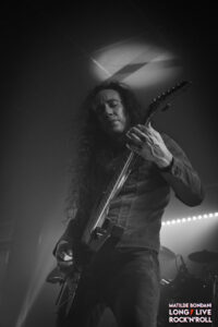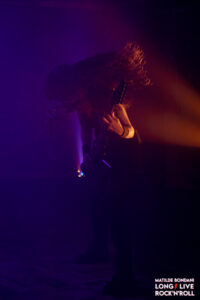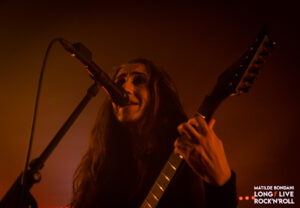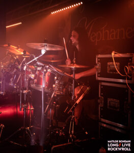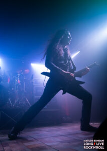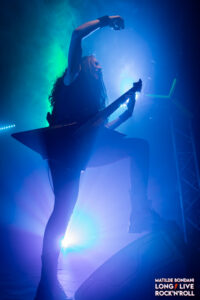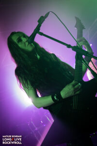 Le ritmiche sono rese compatte dalle solide linee di basso segnate da Lucie Woaye Hune, le tempistiche sono variabili con andamenti veloci costanti, violente accelerazioni e passaggi leggeri, questo grazie anche a Mickaël Bonnevialle che calibra con precisione la forza sulle parti di batteria. Infine il sound è graffiato dal ruvido growl della frontwoman Marion, che mantiene sia le corde vocali che della chitarra roventi, in contrasto con la sua dolce personalità che traspare dai suoi sorrisi e gli occhi che brillano, nel vedere l’enfasi dei fans che spontaneamente urlano e alzano i pugni a tempo, e, con certe canzoni la platea è parecchio movimentata. La loro tenuta di palco risulta un po’ meccanica, Marion sempre al centro e ogni tot canzoni Martin e Lucie si scambiano di posto, dovrebbero dimostrare la loro sinergia affiancandosi l’un latro in coppia o in trio, così il quadro sarebbe completo per definirsi una vera macchina da palco. Oltre al disco Prokopton eseguono Unstoppable e Memento Mori dal debut album, mentre da Dream Of Wilderness suonano solo Le Radeau De Meduse, dal passato traggono anche il singolo Path Of The Wolf, complessivamente riscuotono gran successo e con If I Should Die, finiscono la prima parte dello show ma dopo pochi minuti, tornano dai fans affamati che li reclamano a gran voce e con Bloodline, terminano un live intenso e di alto livello che ha esaltato ogni singolo spettatore dall’inizio alla fine, ricoperti da urla e applausi gli AEPHANEMER possono ritirarsi a testa alta per il gran successo riscosso.