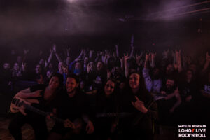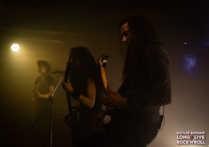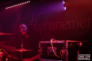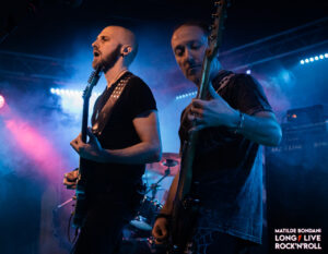 Il pubblico è aumentato sino a raggiungere metà locale, avendo già visto questa band in azione posso confermare che si meriterebbero molto di più, ma in compenso è davvero affiatato infatti mentre i componenti sistemano gli strumenti, li acclamano urlando sorprendendoli. Una volta che è tutto pronto gli AEPHANEMER fanno il loro glorioso ingresso, carichi al massimo dall’entusiasmo dimostrato partono diretti con la title track del secondo disco Prokopton, che eseguiranno interamente nonostante la pubblicazione del terzo lavoro Dream Of Wilderness del 2021. Canzone dopo canzone il loro melodic death metal dilaga in platea, esaltando costantemente i fans che dimostrano tutto il loro calore, alimentati dal loro particolare sound che fonde il death metal tracciato dalle rocciose ritmiche di Marion Bascoul e Martin Hamiche, con sonorità nordiche tendenti al folk inserite nella ritmica e negli assoli, enfatizzate con l’aggiunta di tastiere riprodotte in base, creando una componente melodica rendendo il tutto più atmosferico.