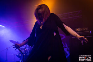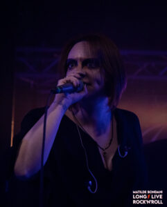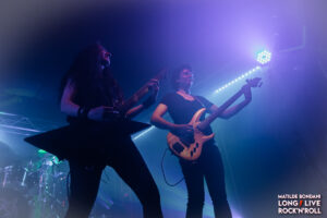 Ovviamente nella ritmica non è presente la componente melodica, il tutto è ben amalgamato dalle marcate linee di basso emesse da Rob, mentre riguardo il cantato Isobelle dà lustro ad una vocalità versatile passando con scioltezza dal lirico, al pulito, al graffiato, fino a sfociare nel growl grattato, enfatizzando le rispettive sfumature del sound e conferendo una venatura symphonic, inoltre nei cori è affiancata da Luca e Rob che mantengono un growl più o meno grezzo. La loro voglia di sperimentare e mettersi in gioco è evidente, i pezzi hanno un bel tiro e la riposta del pubblico è positiva, anche per la dinamica tenuta di palco e interazione soprattutto da parte di Isobelle, che incita i presenti mantenendo mentre canta un portamento teatrale. Nel corso dell’esibizione i milanesi propongono il secondo inedito Violent Delights dedicato al defunto Francesco di Metal Maximum Radio, infine con To The Walls terminano una performance di forte impatto, guadagnandosi il rispetto del pubblico e aprendo la strada ai tanto attesi headliner, rimaniamo in attesa del loro prossimo disco!