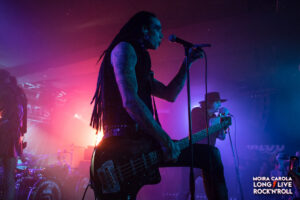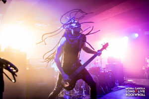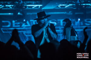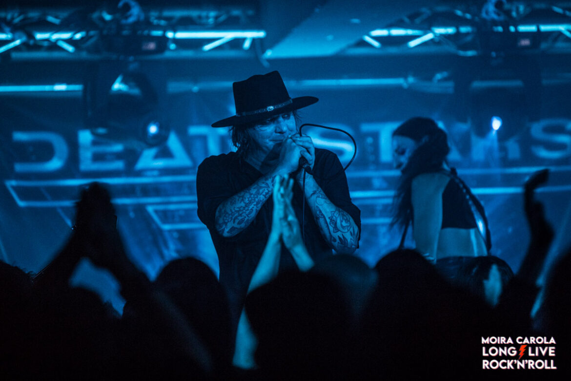 ” “Everything Destroys You” è il volto degli eccessi delle nostre sontuose notti in città. Scriviamo sempre delle nostre vite e non c’è finzione, spiritualità o anima nel midollo dei Deathstars. È la vita sfregiata della città allo stato grezzo.” È così che la band industrial svedese ha commentato il loro ultimo album, “Everything Destroys You”, uscito a distanza di ben nove anni dall’ultimo e che da nome all’attuale tour europeo (“Everything Destroys Europe – tour 2023”). Avevo alte aspettative per questo concerto, nonostante quest’ultimo lavoro non mi abbia entusiasmato: si era creato parecchio hype per questo album, ma ascoltandolo non emergono né elementi di novità né cambi stilistici o melodici; da una parte mi aspettavo una sorta di evoluzione essendo passati anni dall’ultimo disco, ma dall’altra sono anche rimasta sollevata dal fatto che non ci sia stato un grosso cambiamento… L’ho trovato un po’ sottotono rispetto alle opere del passato, ma sono comunque rimasti i soliti Deathstars, brillanti e dinamici, unici nel fondere l’industrial metal più martellante e il gothic più dark! Il palco è allestito in maniera molto semplice, con il solo telo con il logo alle spalle della band, ma la performance è accompagnata da giochi di luci molto efficaci che rendono l’atmosfera più evocativa e ad effetto. Il concerto si apre con “Night Electric Night”, title track dell’album del 2009, un tripudio di suoni sintetizzati dal sentore oscuro, con chitarre corpose, bassi potenti e una voce suadente. La seconda traccia viene dall’ultimo disco, “Between Volumes And Voids”, composizione maestosa che gioca molto sulla complementarità tra voci e orchestrazioni. Si prosegue poi alternando pezzi recenti a brani più datati, tra cui la famosissima “Tongues” e l’inarrestabile “Blitzkrieg Boom”. Il pubblico esplode poi sulle note di “Death Dies Hard”, pezzo classico di intramontabile bellezza: molto anni Ottanta, molto gothic/industrial, molto darkwave, insomma, molto tutto. Dell’ultimo album vengono proposte “This Is”, con suoni oscuri e gotici che creano un ritmo quasi onirico, la festosa e leggera “Midnight Party” e la title track, “Everything Destroys You”, con riff a scatti, tastiere molto moderne e atmosfere gothic. Per il gran finale di questo memorabile concerto viene suonata la disturbante “Cyanide”, a degna chiusura di un concerto elettrizzante! Avevo alte aspettative, ma mai avrei pensato che mi sarebbe piaciuto cosi tanto… che dire, ampiamente superate!