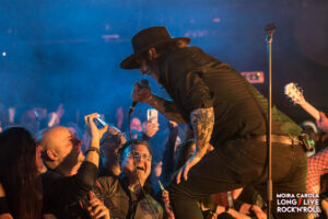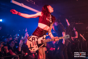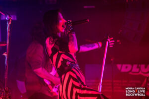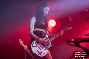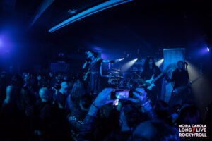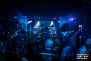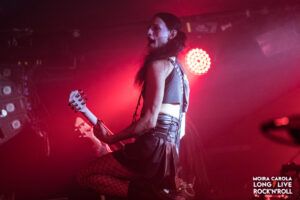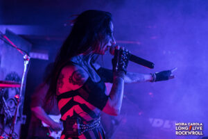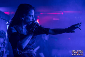 Il primo gruppo ad aprire la serata sono i Liv Sin che, capitanati dall’energica Liv Jagrell (ex frontwoman dei Sister Sin), sono portavoce di un suono heavy metal molto dinamico, il quale senza fatica alcuna trasmette un sacco di carica e voglia di muoversi. Sono guidati principalmente da massicci riff di chitarra, di buona qualità e ben composti, armonie accattivanti e numerosi assoli; musicalmente è palese l’ispirazione, come già scritto, all’heavy metal degli anni ’80 ma con un tocco moderno. Senza dubbio un principale punto di forza della band è la voce di Liv Jagrell, potente e talentuosa. La capacità di passare da una voce aspra ed aggressiva ad una voce più melodica con vari cambi di tono denotano un’estensione vocale di tutto rispetto. Con molta sincerità non conoscevo questa band e avevo ascoltato solo di sfuggita qualche brano in quanto non rientrano per nulla nei generi da me principalmente ascoltati; la realtà è che li ho trovati molto interessanti e molto piacevoli, bravi e coinvolgenti, e sicuramente meritevoli di un ascolto più approfondito!