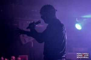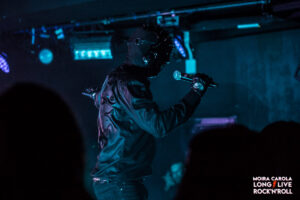 La serata prosegue con il trio svedese Priest, altra band che volevo fortemente vedere live per godermi l’esperienza completa. In attività dal 2017 e con i volti sempre coperti da maschere (molto belle le due da “monaco della peste”) propongono musiche elettroniche, con ampio uso di synth “cyberpunk” e varie componenti industrial, darkwave anni ottanta e gothic. Il richiamo alle sonorità e alle ritmiche dei Depeche Mode è molto udibile in vari pezzi, un esempio lampante è “The Cross”, ma sono comunque bravi a mescolare quello stile e quel richiamo con melodie futuristiche e moderni suoni meccanici. Anche i testi sono coinvolgenti e riprendono lo stile musicale raccontando di paesaggi apocalittici e scenari industrial, ma nelle narrazioni si ritrova spesso anche l’espressione di un’interiorità tormentata, con una forte ricerca dell’io e una grande rabbia derivante da quella che pare una perdita della propria coscienza e della fiducia nel prossimo: ne sono bellissimi esempi “Neuromancer”, “The Cross” e “Obey”. Il concerto chiude con “Vaudeville”, espressione di tale rabbia ma anche di presa di posizione e voglia di ribellione. Una esibizione veramente interessante, molto bravi, molto scenici. Aspettative superate, davvero una bellissima esperienza, tornerò sicuramente a vederli e consiglio moltissimo di fare altrettanto!