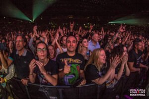 L’accoglienza del pubblico, che riempie gran parte del palazzetto, si fa sentire fin dalle prime note.