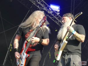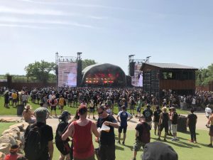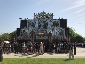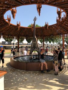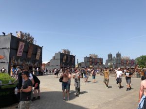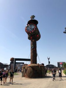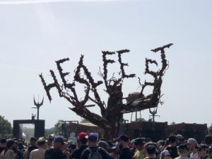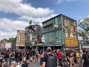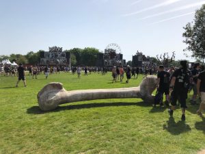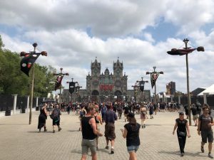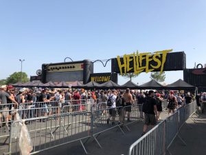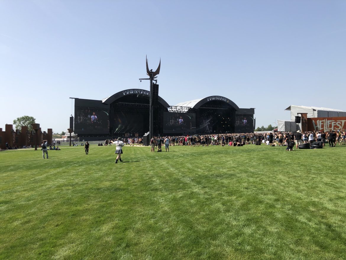 Varcando l’entrata dell’Hellfest si viene accolti da una piazza a dir poco stupenda, l’Hellcity Square. Già, perché l’Hellfest si distingue dagli altri festival principalmente dal fatto che il sito dove si svolge l’evento è di proprietà degli organizzatori. Un enorme differenza rispetto agli altri festival europei come il Download o il Wacken, dove i terreni dispongono di concessioni dove gli organizzatori costruiscono quindi i classici stage temporanei proprio solo per la durata del festival, prima di liberare interamente il luogo dove si svolgono i concerti. L’Hellfest puo’ invece godere della proprietà del sito per costruire vere e proprie strutture fisse presenti tutto l’anno su cui è stata accordata un attenzione maniacale per la cura dei dettagli. Risultato? Una città estremamente curata dal carattere rock che vi farà sentire come nel quartiere di Camden Town a Londra. Negozi di abbigliamento rock, chitarre, ampilificatori, tatuaggi, piercing, Harley Davidson… liutai locali, artigiani, produttori… tutto quello che potete immaginare essere legato alla grande famiglia della musica rock è presente all’Hellfest. Ma parliamo dell’organizzazione e delle srutture : senza uguali. Statue ovunque, bar e luoghi di ristoro di una bellezza indescrivibile, memoriali dedicati ai grandi musicisti del passato, una torre a orologio che potrebbe fare concorrenza a Big Ben… fontane, luoghi per rinfrescarsi, cascate tematizzate Hellfest, cantina con degustazione di Muscadet, una foresta a forma di labirinto bellissima… la lista di cose da vedere sembra non finire mai. E non abbiamo neanche ancora parlato della parte piu’ importante del festival che sono ovviamente i palchi ! Tre palchi coperti (Altar, Temple e Valley) e tre palchi scoperti (Mainstage 1, Mainstage 2 e War Zone). Tutti palchi tematizzati per genere musicale, dal Death al Black Metal, dallo Stoner al Doom, dal Folk al Progressive, dal Classic Rock all’Hard Rock… insomma, quello che dicono è proprio vero, l’Hellfest è Disneyland per i metallari!