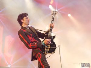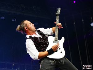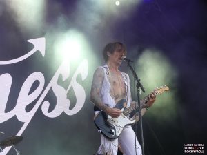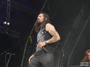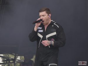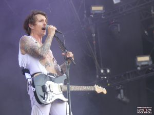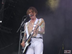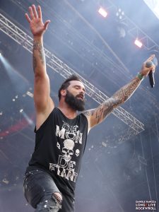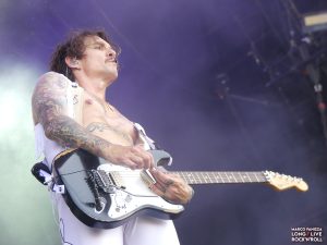 La seconda giornata è caratterizzata da un caldo ancora più forte che supera i 40 gradi. ll che pero’ rende ancor più « divertente » l’andare sotto le cascate d’acqua fredda e godersi le band come usciti da una piscina (che tra l’altro con questo caldo, bagnati ci si rimaneva ben poco). Dopo aver iniziato la giornata con un paio di piccole band interessanti (Soprattutto l’intrigante progetto folk metal degli Aktarum), va menzionata la piacevolissima e straordinaria scoperta dei The Picture Books. Un duo di Stoner Blues capace di fare entusiasmare tutto il Valley Stage già a mezzogiorno con una performance davvero di altissimo livello dimostrando di saper tenere benissimo il palco anche solo con due membri, cosa decisamente non scontata. Oltremodo interessante vedere sul medesimo palco l’esibizione dei Me And That Man di Nergal. Side project del famosissimo cantante/chitarrista dell’iconica band Polacca di blackned death metal Behemoth. Fa un certo effetto vedere un Nergal in versione cowboy cantare pezzi country, dark folk e gothic blues, sapendo il personaggio estremo che incarna nei Behemoth… sicuramente una dimostrazione di capacità artistica sensazionale. Proseguiamo con una performance da 10 di una band che sa sempre distinguersi in modo davvero sensazionale: gli Skillet. Band del Tennesse di Christian Rock capace di portare un suono esplosivo e dei pezzi di una bellezza singolare. I testi trasmettono sempre messaggi di fede, di fratellanza e all’invito di non mollare mai, il che non fa che dare un valore aggiunto a questa fantastica band. Seguono i Darkness con un ulteriore prestazione da manuale. Questa band sa esprimere l’Hard Rock nel modo piu’ puro e genuino con un frontman tanto folle quanto geniale. Justin Hwakins ha infatti quel carsima da persona di una grandissima bontà che sa gestire il suo falsetto in modo egregio senza mai cadere nel ridicolo, anzi, apportando davvero un tocco di classe ad ogni singolo pezzo. Molto bello il duetto a sorpresa per chiudere il loro set con “I Believe In a Thing Called Love” in compagnia del cantante degli Steel Panther, Michael Starr. Dopo aver assistito ad uno dei poghi piu’ divertenti in assoluto sulle note dei pezzi in pirate metal dei sempre divertentissimi Alestorm e alla classe dei pezzi Hard Rock Blues dei Rival Sons, ci divertiamo ancor di piu’ sull’ormai classica esibizione esuberante e fuori controllo appunto degli Steel Panther. Per la prima volta orfani di uno dei loro membri storici, il bassista Lexxi Foxx (rimpiazzato da Spider), la loro performance è tutto quello che uno si aspetta da loro con pezzi Hard Rock sensazionali conditi da testi deliranti. Uno direbbe che alla fine sono quasi vent’anni che gli Steel Panther portano lo stesso concetto di pezzi e di musica, ma alla fine ci piacciono proprio per quello. Proseguendo con una delle nostre fierezze nazionali di musica metal, un vero astro nascente di questo genere di nicchia del doom ambient/drone, la band veneta Messa sfodera una performance da standing ovation di fronte a un pubblico esperto in materia che riesce quindi a capire ed apprezzare questo genere molto particolare e spesso incompreso. Arrivando quindi ai nomi di un certo peso, ci vediamo la performance chirurgica dei Megadeth con un sempre poco simpatico Dave Mustaine e il sempre impressionante Kiko Loureiro alla chitarra prima di andare ad assistere ad un set molto piu’ heavy, quello dei Sepultura. La storica e iconica band brasiliana inonda l’Altar Stage con un suono devastante, godendo ormai di una formazione piu che consolidata con al canto l’imponente Derrick Green che, a mio parere, per quanto non sia tra i membri fondatori della band, è un frontman perfetto di gran lunga piu’ bravo di Max Cavalera. Ci possiamo poi quindi godere un pezzo di storia del classic rock assitendo alla performance carica di parti strumentali dei Deep Purple, che si dimostrano in ogni modo, nonostante l’età, sempre molto piacevoli. Siamo di fronte infatti a un vero pezzo di storia che rimane sempre e comunque affascinante. Abbiamo inoltre potuto assistere a un formazione inedita dei Deep Purple in quanto il chitarrista irlandese blues/rock Simon McBride rimpiazza in queste date del tour Steve Morse, assente per questioni di salute familiare. Giunge il momento del secondo principale headliner dell’Hellfest, i mitici Ghost di Tobias Forge. Che dire… una macchina perfetta ormai collaudata da anni con un aspetto scenografico inimitabile e dei pezzi bellissimi. Uno show in tutti i sensi, dai costumi di Papa Emeritus IV alle nuove tenute sensazionali dei Nameless Ghouls, ispirati ai personaggi Tusken di Star Wars. Uno show assolutamente fantastico! Giunge infatti un po’ come una sorpresa quando Tobias (che fino a quel momento era stato impeccabile) annuncia che non ha piu’ voce per concludere la scaletta forzando quindi la band a chiudere lggeremente in anticipo il loro set. Va detto che ormai piu’ di 90% della scaletta era stata completata e che quindi in realtà sarebbero mancatii solo un paio di pezzi per concludere il concerto come da programma (tra cui l’iconica “Square Hammer” con cui la band conclude sempre il set). In compenso, abbiamo avuto l’onore di sentire “Griftwood” per la prima volta insieme al coro delle Sisters of Sin, una vera chicca. In conclusione, il piccolo imprevisto della voce di Tobias non intacca in alcun modo un performance pazzesca della band svedese. Chiudiamo la giornata con una vera esperienza da rock ‘n’ roll. E chi non meglio degli Airbourne potevano avere quest’incarico? La fantastica band di hard rock australiana ha dovuto affrontare qualsiasi cosa in questo set, principalmente dovuto al fatto che, quel caldo e quel sole cocente di cui abbiamo goduto tutta la giornata si era ormai trasformato in una vera e propria tempesta, con tanto di fulmini, diluvio e vento fortissimo. Il suono è stato quindi alterato varie volte 