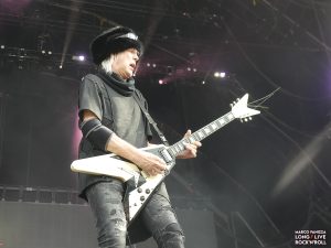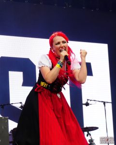 Nell’ultima giornata del primo weekend, il tempo e le temperature sono tornate a delle condizioni normali con un piacevole sole leggermente coperto, ovvero le condizioni ideali per godersi il festival. Iniziamo la giornata con la band di folk metal austriaca Kontrust, un misto esplosivo di heavy metal, riff bombastici e una componente crossover molto intrigante. Assoluti trascinatori e band perfetta per scaldare l’atmosfera! Dopo un altro paio di band minori, arriva il momento della nostra band italiana piu’ amata e di grandissimo orgoglio nazionale, i Lacuna Coil. Cristina, Andrea, Marco, Diego e Richard tirano fuori una delle prestazioni piu’ sensazionali dell’intero weekend ! E non lo dico per patriottismo, basta guardare oggettivamente quello che questa band ha saputo portare sul Mainstage 1 del festival metal piu’ importante al mondo e la conseguente reazione straordinaria del pubblico. Le voci di Cristina e Andrea si alternano a mereaviglia e il suono è pressoché perfetto! Cristina ci delizia addirittura su note da soprano sulla parte finale di “Venificium”… una performance letteralmente da brividi! Proseguiamo con la band di power metal finlandese Battle Beast. Un band capace di diffondere moltissimo entusiasmo capitanata dalla voce letteralmente fenomenale della frontwoman Noora Louhimo. Ci andiamo poi a vedere una delle band piu particolari ed intriganti venute sotto i riflettori quest’anno, i Twin Temple. Il duo americano è stato infatti scelto dai Ghost per il loro recente tour come gruppo spalla e non hanno assolutamente deluso le attese. Il concetto di questa band è molto particolare perché i costumi e i concetti fanno addirittura pensare a tendenze sataniche, ma in realtà il loro genere musicale è un rockabilly derivato dal rhytmn ‘n’ blues con tantissimo carisma e tanta qualità musicale. La cantante Alexandra James potrebbe essere a tutti gli effetti la reincarnazione di Amy Whinehouse, sia dal punto di vista della voce che dall’aspetto estetico. Una band nuova davvero molto interessante che è stata capace di portare un genere praticamente nuovo con tantissima inventiva. Dopo avere visto un paio di pezzi dell’immortale Doro Pesch, arriva LA performance del weekend. Attesissimi, sia per il loro talento totalmente indiscusso che per la situazione particolare in cui arriva questa performance. I Jinjer sono infatti stati nominati dal Ministero della Cultura Ucraino come ambasciatori del paese per raccogliere fondi e diffondere consapevolezza sulla guerra che sta infuriando la loro casa, concedendo quindi loro il permesso di viaggiare all’estero e diffondere questo importantissimo messaggio. La performance della band è micidiale, letteralmente da brividi. Siamo di fronte a una band che ha rivoluzionato il djent trasformandolo in concetto tecnico ancor piu’ spinto aggiungendo delle melodie che creano reale dipendenza da quanto si dimostrino sensazionali e ben costruite. Inutile dire quanto le capacità vocali di Tatiana Shmailyuk siano folgoranti. Nessun cantante al mondo è capace di fare lo switch tra clean vocals e harsh vocals in pocchi millisecondi e Tatiana lo fa con una naturalezza disarmante. Il discorso in onore dell’Ucraina che fa Tatiana è da pelle d’oca e le note della loro “Home Back” suonano piu’ che mai come un grido a squarciagola che tutti noi ci auguriamo possa essere ascoltato al piu’ presto! C’è solo da togiersi il cappello ed ammirare quanto visto e quanto stia facendo questa band, per la musica e soprattutto per il loro paese. Con la classe inimitabile di Michael Schenker e la bellezza dei suoi pezzi ci prepariamo ad un altro evento molto atteso davvero particolare, un rara esibizione in Europa dei Maximum The Hormone, band Giapponese completamente folle e mostruosa. Già perché sebbene il loro progetto possa sembrare un crossover di moltissimi stili che si intrecciano tra di loro, cosi’ come giustamente una forte tendenza ad inserire passaggi in perfetto stile sigla da manga giapponese, siamo di fronte a dei musicisti di un talento strepitoso! Eseguono delle tecniche che rasentano l’impossibile con un energia disumana creando un entusiasmo pazzesco tra tutto il pubblico! Ed è proprio questa la cosa sensazionale nella band, fare pezzi letteralmente folli senza mai cadere nel ridicolo o nel parodico, ma esaltandoli al punto giusto creando quella particolarità che si distingue in modo secco da qualsiasi altro pezzo. Performance da 10 assoluto e un vero privilegio aver potuto assistere ad un tale scambio interculturale e musicale. Proseguendo con una performance abbstanza deludente di Philip Anselmo con i suoi Down, tocca quindi ai Korn. Mi trovo sempre in difficoltà a commentare questa band perché personalmente non li amo e non ho mai capito tutta la fame che si è creata nel corso degli anni intorno a questa band… sarebbe ingiusto dire quello che penso perché una maggioranza del popolo metal li apprezza e quindi mi rendo conto che in questo caso il mio parere personale influisce troppo su quella che puo’ essere stata la loro performance oggettiva… mi limitero’ a dire che non riesco a comprenderli e che tecnicamente penso sia chiaro che non eseguano nulla di impressionante. Ma il bello della musica è proprio che è soggettiva, e quindi vedere che un artista venga apprezzato dalla maggior parte del pubblico fa sempre piacere e deve passare in priorità di fronte a qualasiasi idea personale. Detto questo, passiamo a quelle che sono invece delle leggende della storia del metal. Un band che ha praticamente fondato un genere insieme a qualche altra « piccola » band connazionale britannica. Pionieri e letteralmente icone di un genere con 50 anni di attività, arriva il momento dei Judas Priest! Il loro set è una celebrazione della loro carriera con pezzi da quasi tutti gli album, con un Rob Halford che a 70 anni suonati dimostra di essere letteralmente immortale. Cantare con quella voce