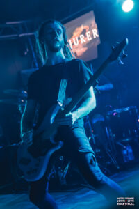 Cambiamo atmosfera con il secondo gruppo. I Conjurer ci portano su un genere totalmente diverso da tutte le band presenti in line-up proponendo uno sludge con forti influenze di black metal proponendo instancabilmente dei groove violentissimi e martellanti, pieni di riff graffianti, doppia cassa e scream. I componenti sono molto concentrati a suonare i loro lunghi e articolati pezzi uno dietro l’altro, lasciano poco spazio alle chiacchiere. Durante l’ultimo brano il bassista ha portato un po’ di dinamicità scendendo per suonare nel pit.