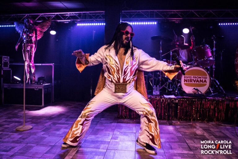 Gli ELVANA – Elvis Fronted Nirvana, si sono esibiti al Legend Club di Milano, venerdì 19 gennaio 2024. Dalle viscere di Disgraceland, le icone del Rock & Roll dell’aldilà risorgono dai morti! Il Rock & Roll incontra il Grunge mentre Elvis affronta i Nirvana e dà alla band il frontman che mancava dal ’94. Elvana fa a pezzi il catalogo…