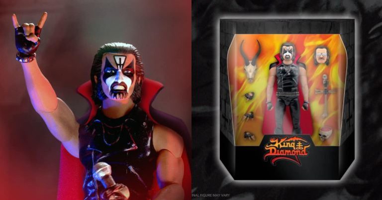 Non manca proprio niente nella action figure di King Diamond! Il leggendario cantante dei Mercyful Fate ha reso disponibile il suo modellino completo di ogni tipo di accessorio intercambiabile. Ecco la lista completa: Body con gilet con dettaglio texture pelle e cintura proiettile Tre (3) teste: Classic Corpse Paint, No Makeup with sunglasses, e Debut Mercyful Fate makeup mantello nero…