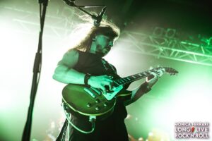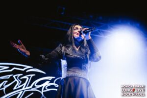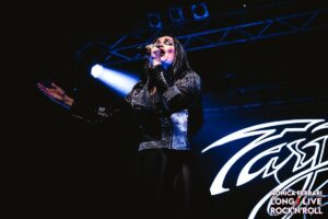 E’ stato poi il turno di quella che i fan chiamano dolcemente “Diva” o “Dea”: Tarja Turunen. Tarja si è presentata sul palco e dopo la prima canzone ha disarmato tutti con una sincerità spiazzante: confessa di non sentirsi bene, ma promette che darà comunque tutto ciò che ha. “Voi siete tutto ciò di cui ho bisogno”, dice. E il Live Club si è stretto attorno a lei accogliendo tanto le sue probabili difficoltà, quanto il suo impegno a essere salita comunque sul palco.