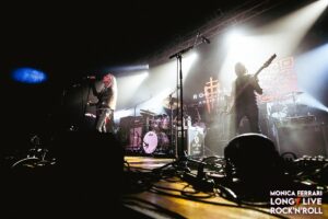Il pubblico ha trattenuto il fiato quando è partita I Wish I Had an Angel. È un brano simbolo, un pezzo che porta con sé un’intera epoca. Ma proprio nel crescendo, un imprevisto: uno spettatore si è sentito male. La musica si è interrotta, gli addetti del Live Club sono intervenuti con prontezza, e la sala è rimasta sospesa in un silenzio carico di preoccupazione.